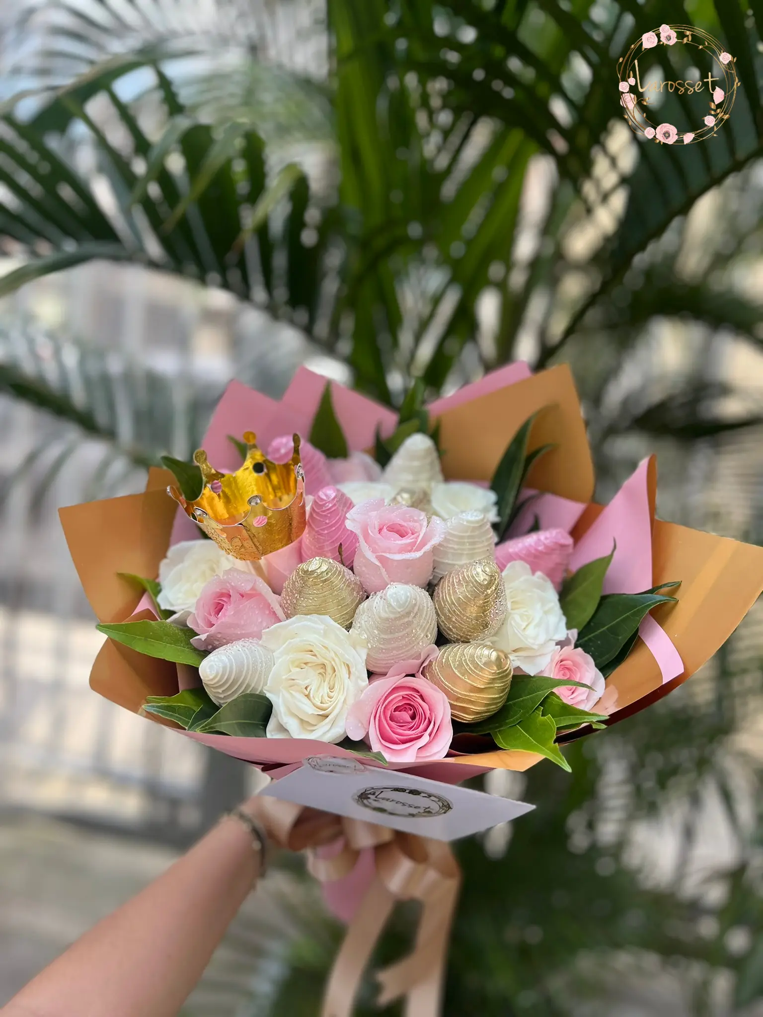 Manojo 12 rosas 12 fresas con chocolates