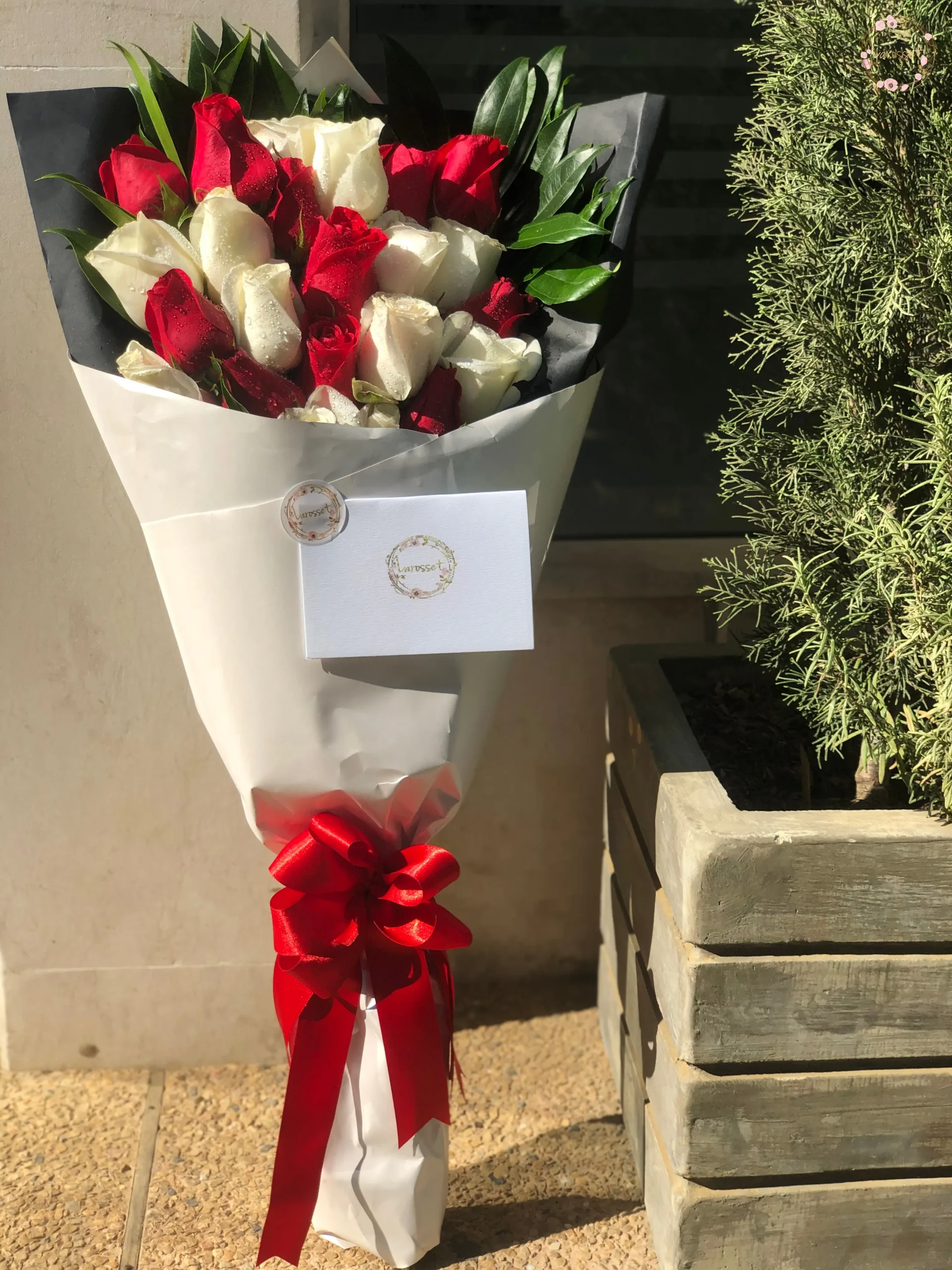 Manojo 24 rosas blancas y rojas, tambien puedes elegir el de tu preferencia