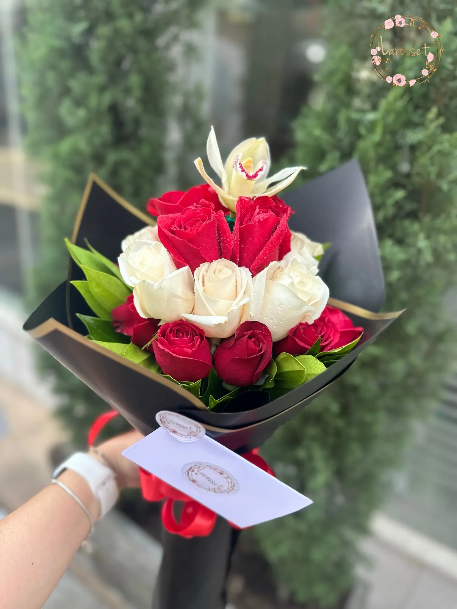 Manojo 24 rosas con orquidea