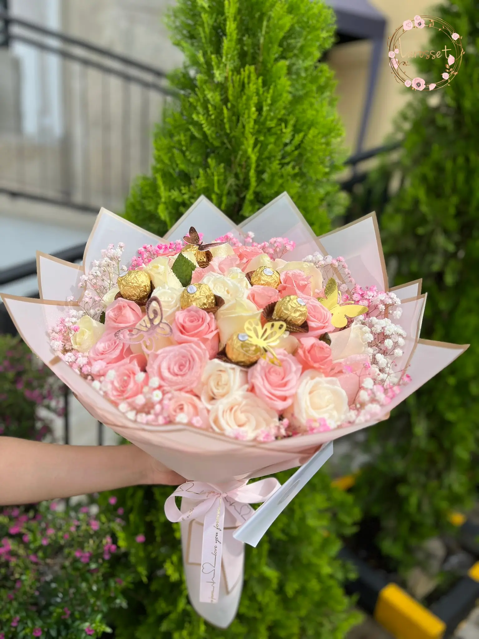 ): Ir al contenidoManojo 50 rosas 9 ferrero rocher, tonos pasteles