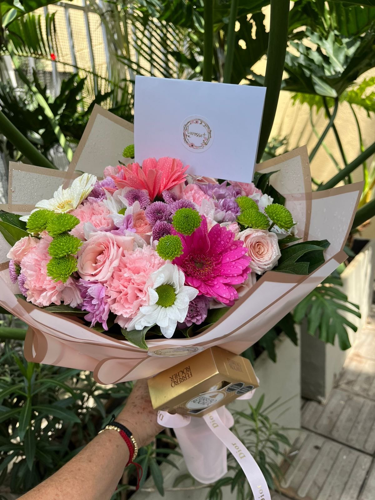 ): Ir al contenidoFlores primaverales con caja de chocolates ferrero