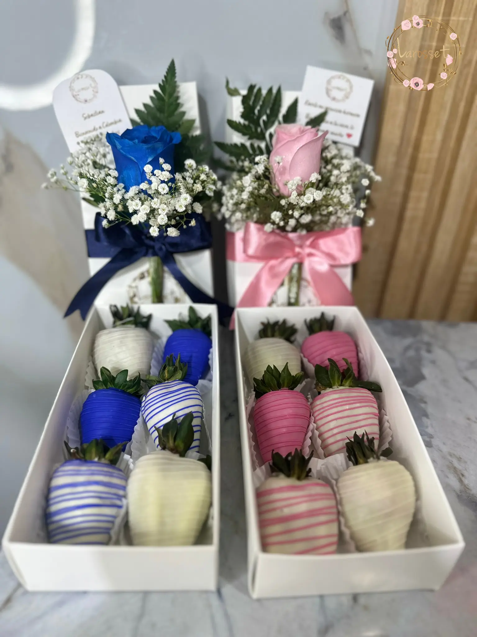 Incluye 2 cajas de fresas con chocolates, elije el color de tu preferencia